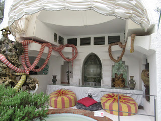 The hot pink lips sofa reminded me of the one we'd seen just yesterday in the Homage to Mae West Room in his museum-theater. I was surprised the pool area was totally open to visitors and not roped off at all. I wonder what the connection was between Dali and tires as they seemed to play a strong role in his art.